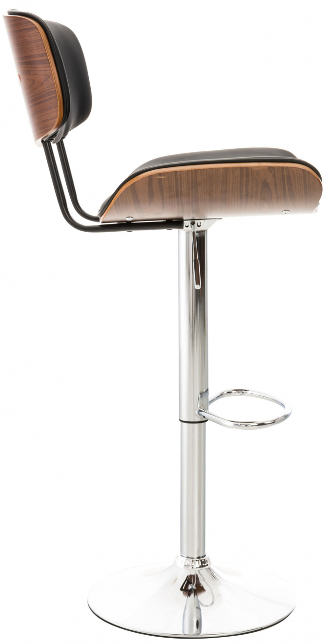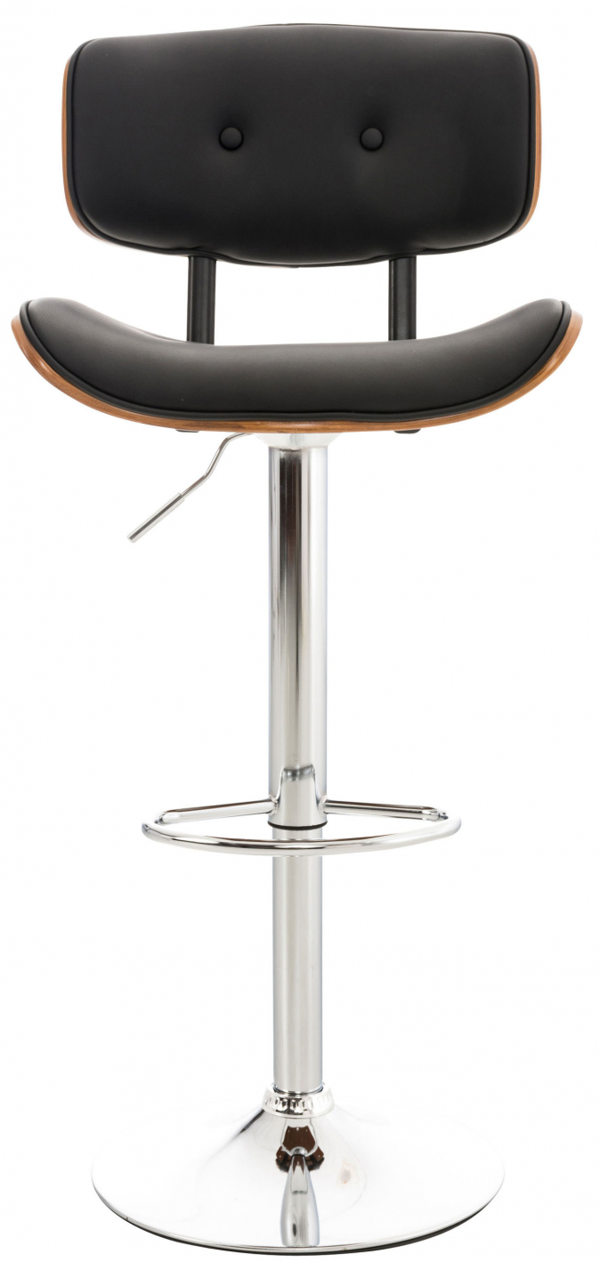 Tato barová židle dodá každému pultu elegantní vzhled. Vyznačuje se nejen prvotřídním komfortem sezení, který slibuje díky svému ergonomickému tvaru, ale také moderním designem. Zakřivený sedák a opěrák dřevěného sedáku jsou čalouněné a potažené imitací kůže. Ozdobné knoflíky na potahu dělají z barové židle naprostou atrakci pro oči. Rám je vyroben z kovu s chromovým vzhledem a snadno a rychle se čistí. Barová židle je plynule výškově nastavitelná pomocí plynového zdvihu. Opěradlo, sedák otočný o 360° a ergonomická opěrka nohou zajišťují maximální pohodlí při sezení a umožní vám pohodlně sedět i několik hodin v kuse.