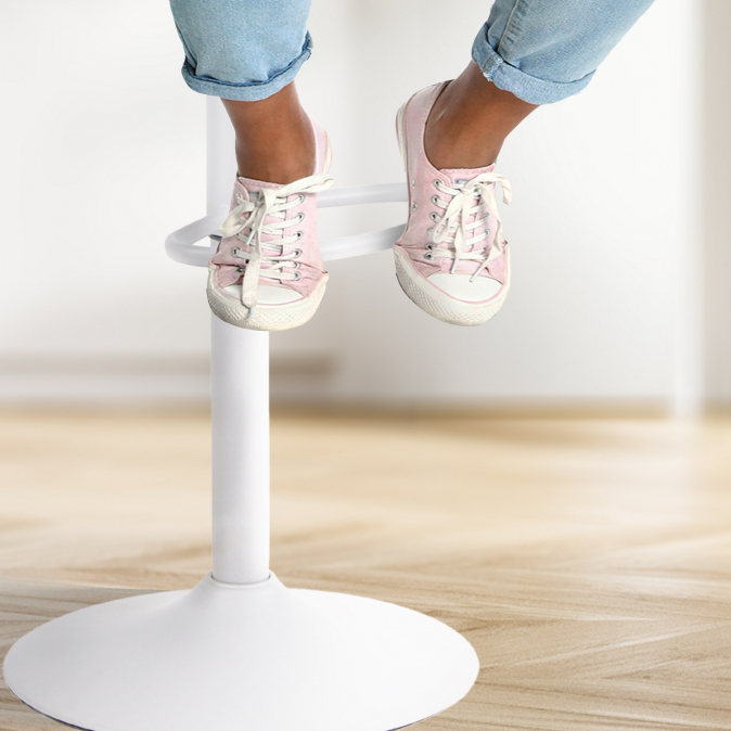 Tyto barové židle zaujmou svým inteligentním designem. Byly zredukovány na to nejnutnější, aniž by došlo ke snížení komfortu sezení. Zakřivená skořepina sedáku je vyrobena z imitace kůže a nabízí příjemné posezení. Pultové stoličky jsou výškově nastavitelné pomocí plynového zdvihu a lze je otáčet o 360 stupňů. Podnožka, kterou lze nastavit synchronizovaně se sedákem, umožňuje pohodlné sezení po dobu několika hodin. Design dotváří kovová trubková podnož, která zajišťuje stabilitu pultové židle. Podlaha je chráněna chráničem, který zabraňuje poškrábání a poškození.