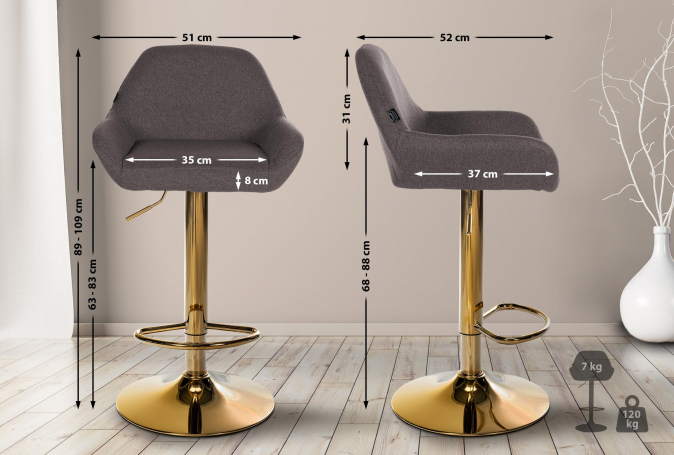 2 ks / set barová židle Braga Gold látkový potah, tmavě šedá | Tmavě šedá | 4 623 Kč