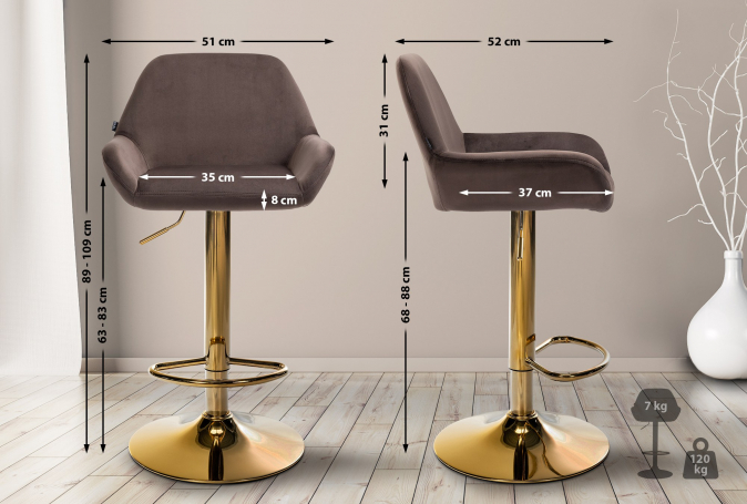 2 ks / set barová židle Braga Gold samet, hnědá | Hnědá | 6 249 Kč