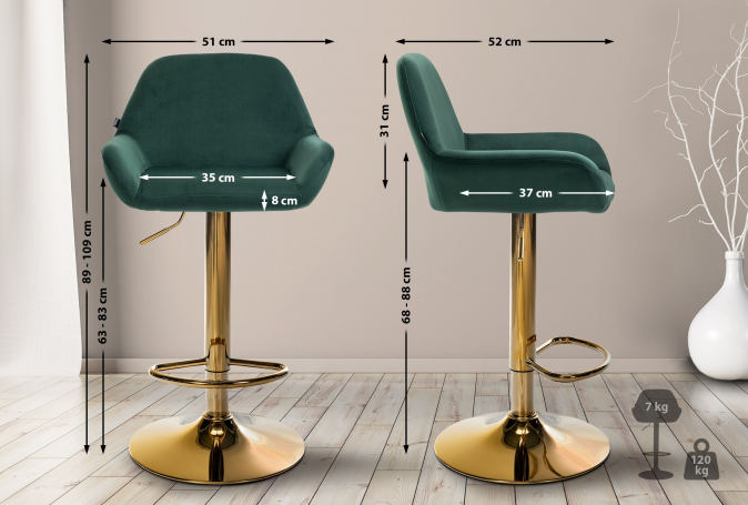 2 ks / set barová židle Braga Gold samet, tmavě zelená | Tmavě zelená | 4 491 Kč