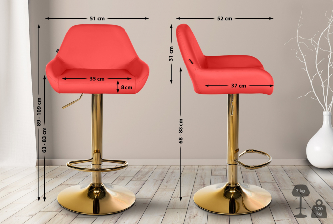 2 ks / set barová židle Braga Gold syntetická kůže, červená | Červená | 4 755 Kč