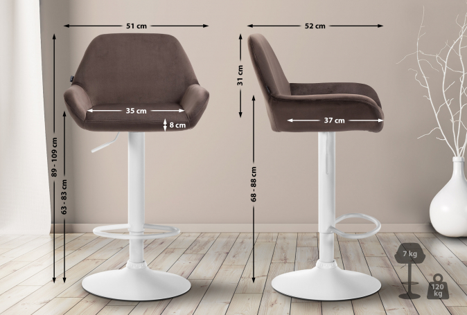 2 ks / set barová židle Braga samet bílá, hnědá | Hnědá | 7 082 Kč