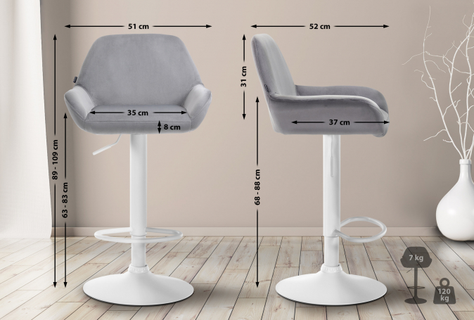 2 ks / set barová židle Braga samet bílá, tmavě šedá | Tmavě šedá | 6 582 Kč