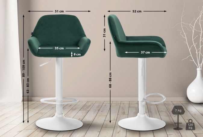 2 ks / set barová židle Braga samet bílá, tmavě zelená | Tmavě zelená | 6 582 Kč