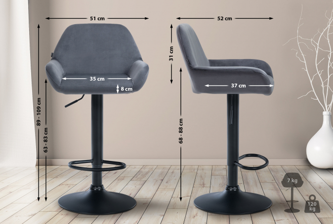 2 ks / set barová židle Braga samet černá, tmavě šedá | Tmavě šedá | 6 249 Kč