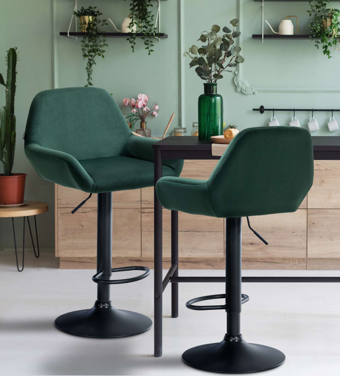 2 ks / set barová židle Braga samet černá, tmavě zelená | Tmavě zelená | 6 457 Kč