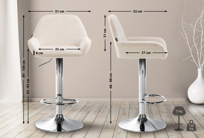 2 ks / set barová židle Braga samet chrom, krémová | Krémová | 7 082 Kč