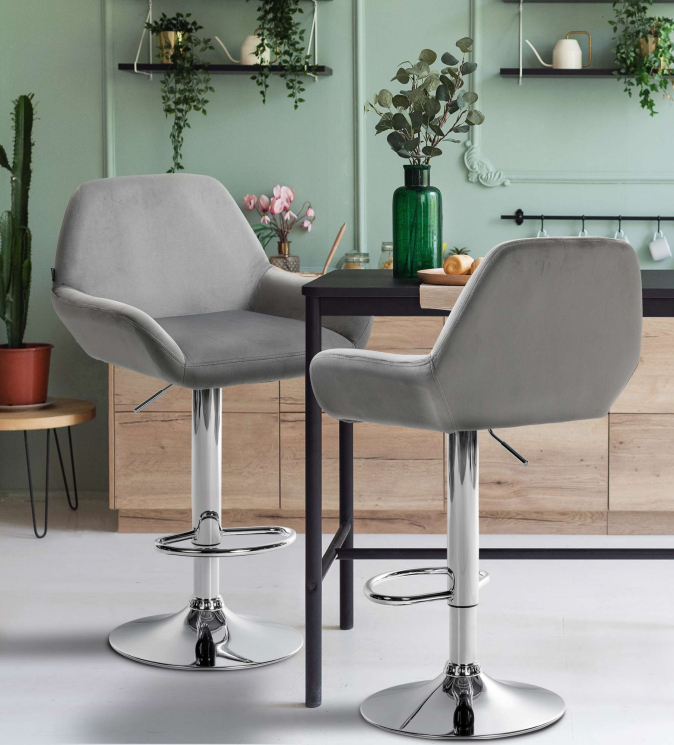 2 ks / set barová židle Braga samet chrom, šedá | Šedá | 7 082 Kč
