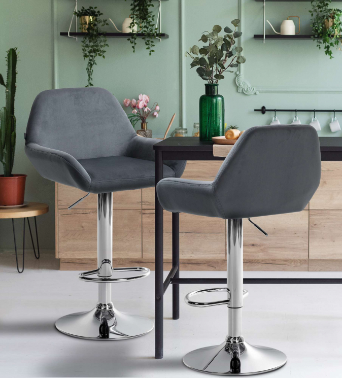 2 ks / set barová židle Braga samet chrom, tmavě šedá | Tmavě šedá | 6 582 Kč