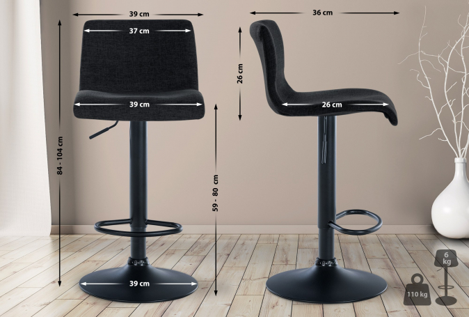 2 ks / set barová židle Brandon látkový potah, tmavě šedá | Tmavě šedá | 3 962 Kč