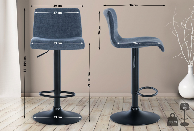 2 ks / set barová židle Brandon látkový potah, modrá | Modrá | 3 698 Kč