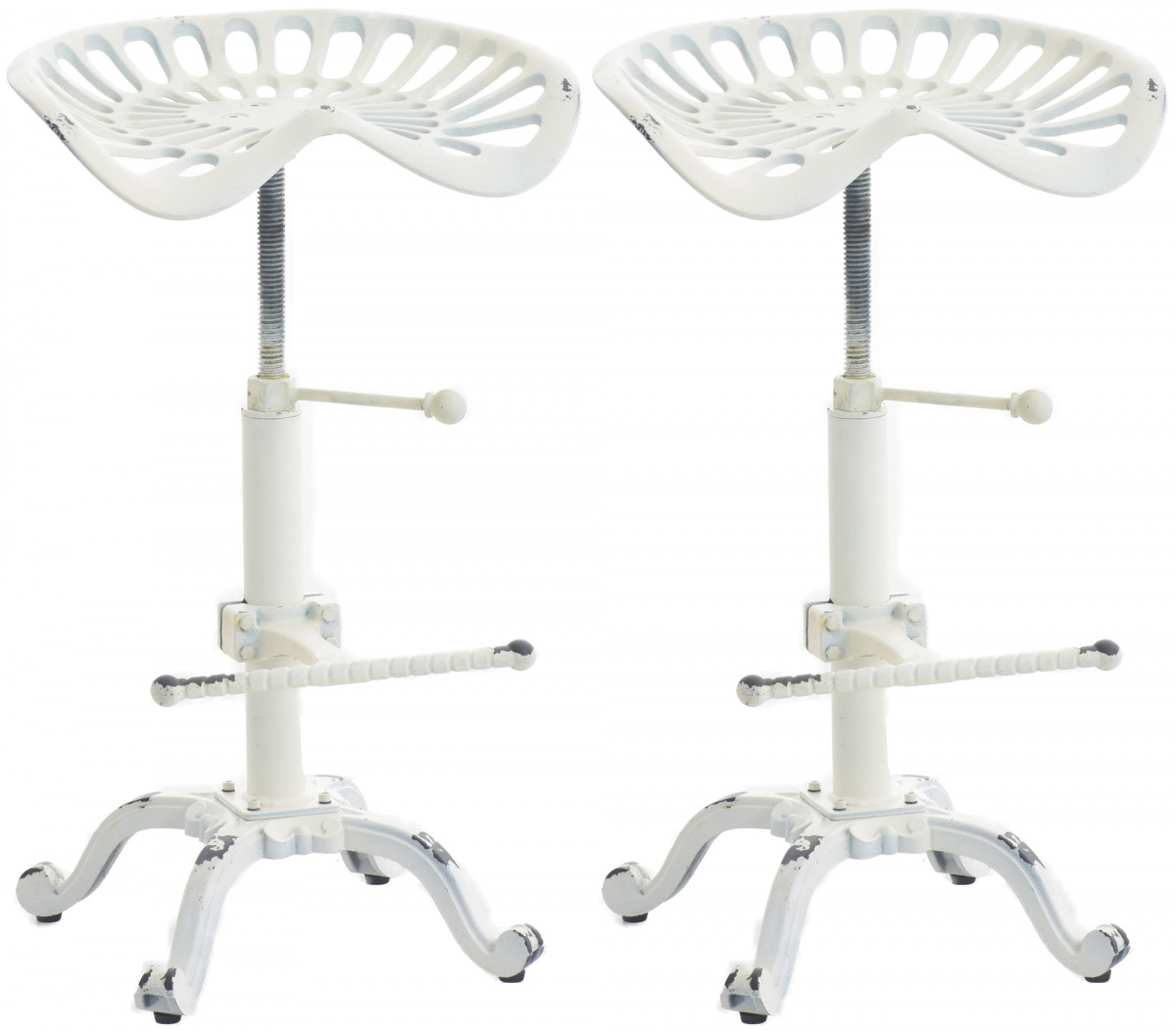 Tento stolička je skutečným designovým skvostem. Litinové sedátko obou barových stoliček poskytuje pohodlné sezení i bez polstrování, protože sedací plocha je díky lehkému zakřivení ergonomicky tvarovaná. Výškově nastavitelná sedací plocha, kterou lze nastavit pomocí aretační kliky pod sedákem, zabraňuje nepříjemnému viklání a nabízí pohodlné sezení pro každou postavu. Příjemná opěrka na nohy, která je rovněž výškově nastavitelná, dále zvyšuje komfort sezení. Nohy stoličky lze pomocí chráničů podlahy individuálně nastavit do výšky, takže nepříjemné viklání patří minulosti. Zdobená konstrukce z práškově lakovaného kovu dodává celé sadě jedinečný design a zároveň zajišťuje stabilní postavení.