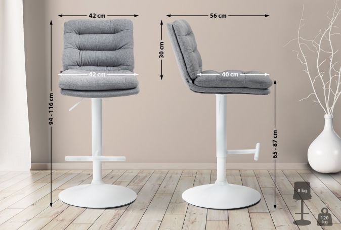 2 ks / set barová židle Dakar látkový potah, bílá, šedá | Šedá | 6 915 Kč