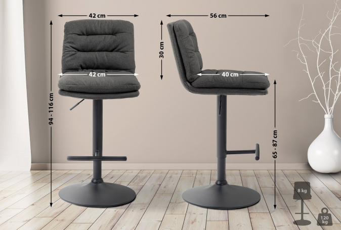 2 ks / set barová židle Dakar látkový potah, černá, tmavě šedá | Tmavě šedá | 4 623 Kč