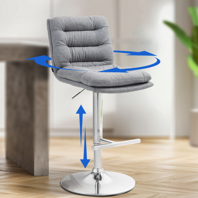 Rám stoličky a módní potah dodávají stoličce elegantní vzhled. Sedák je potažen odolnou látkou. Kovový rám je výškově nastavitelný a funkce otáčení o 360 stupňů zajišťuje dostatek volnosti pohybu.