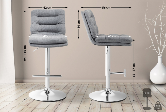 2 ks / set barová židle Dakar látkový potah, chrom, šedá | Šedá | 6 915 Kč