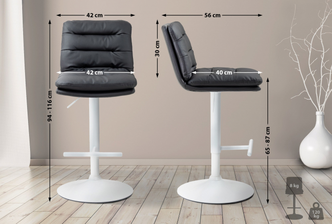2 ks / set barová židle Dakar syntetická kůže, bílá, černá | 94 - 116 cm | Syntetická kůže | 65 - 87 cm | 42 cm | 56 cm | Černá | 8 Kg | 120 Kg | 4 914 Kč