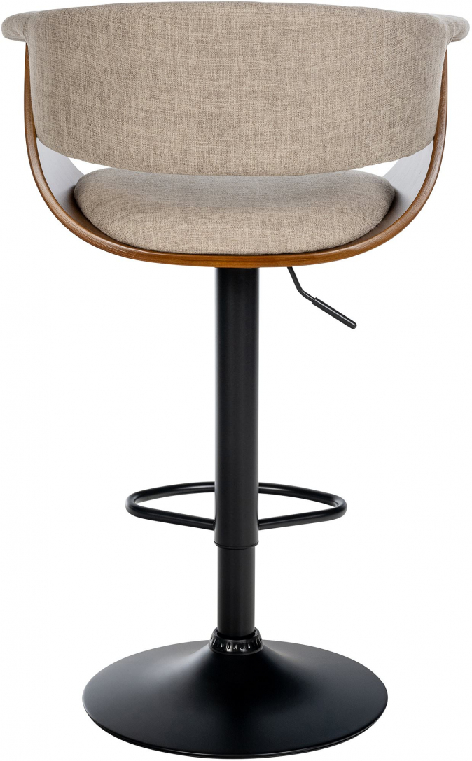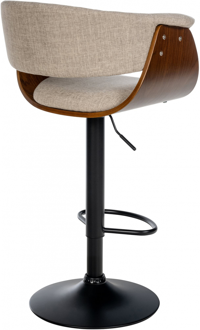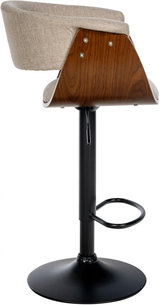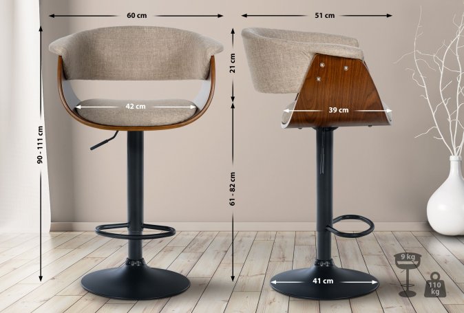 Tato sada barových židlí spojuje nadčasovou eleganci s moderní funkcionalitou. Pěkně tvarované dřevěné sedáky jsou vybaveny vysoce kvalitním potahem, buď z umělé kůže nebo látky, v sedací a zadní části jsou polstrované, což umožňuje pohodlně sedět po delší dobu. Barová židle může být navíc otočena o 360° a díky plynovému pístu pod sedákem je její výška plynule nastavitelná. Robustní kovový podnož vypadá jako elegantní trychtýřovitá noha, která nejen nabízí moderní estetiku, ale je také mimořádně stabilní a bezpečná. Integrovaný podnožek poskytuje další komfort a podporuje zdravé sezení. Podložka pod trychtýřovou nohou zabraňuje klouzání a nezanechává žádné pruhy nebo škrábance na podlaze.