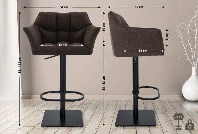 Sada dvou barových židlí Deluso kombinuje eleganci s pohodlím při sezení. Díky čalouněným látkovým potahům jsou stoličky ideální do kuchyně, obývacího pokoje, jídelny i domácího baru.