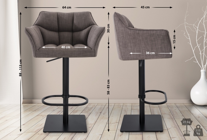 Sada dvou barových židlí Deluso kombinuje eleganci s pohodlím při sezení. Díky čalouněným látkovým potahům jsou stoličky ideální do kuchyně, obývacího pokoje, jídelny i domácího baru.