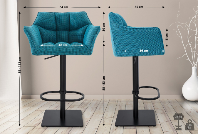 Sada dvou barových židlí Deluso kombinuje eleganci s pohodlím při sezení. Díky čalouněným látkovým potahům jsou stoličky ideální do kuchyně, obývacího pokoje, jídelny i domácího baru.