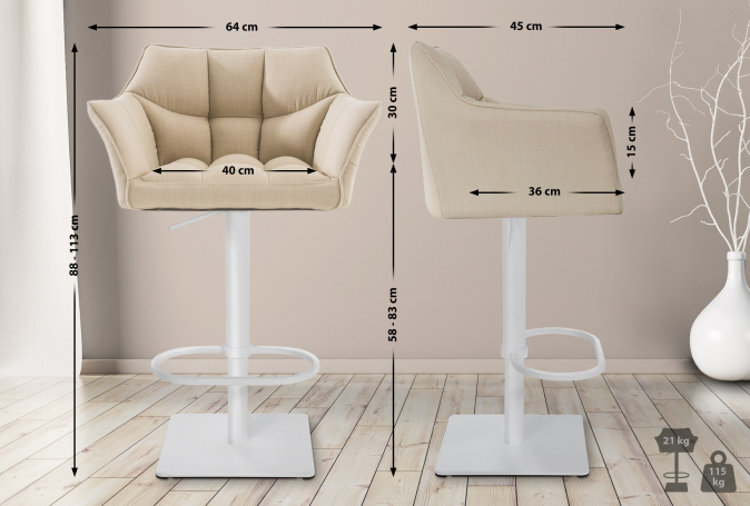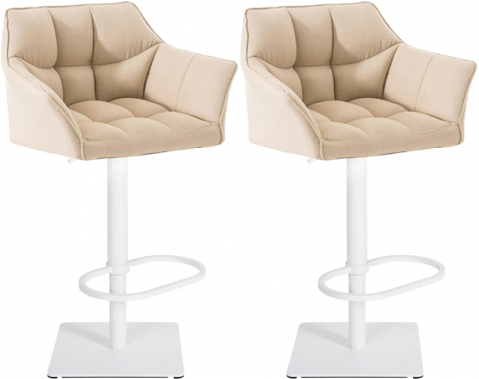 2 ks / set barová židle Deluso látkový potah - krémová, podnož otočná - bílá | Krémová | 10 571 Kč