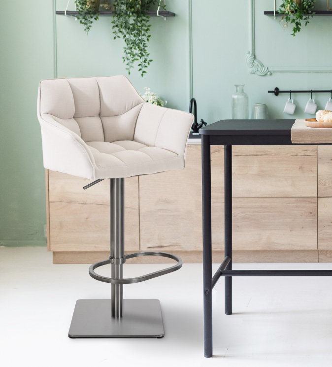 Sada dvou barových židlí Deluso kombinuje eleganci s pohodlím při sezení. Díky čalouněným látkovým potahům jsou stoličky ideální do kuchyně, obývacího pokoje, jídelny i domácího baru.