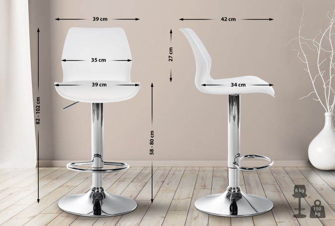 2 ks / set barová židle Dilmos plast, bílá | Bílá | 2 772 Kč