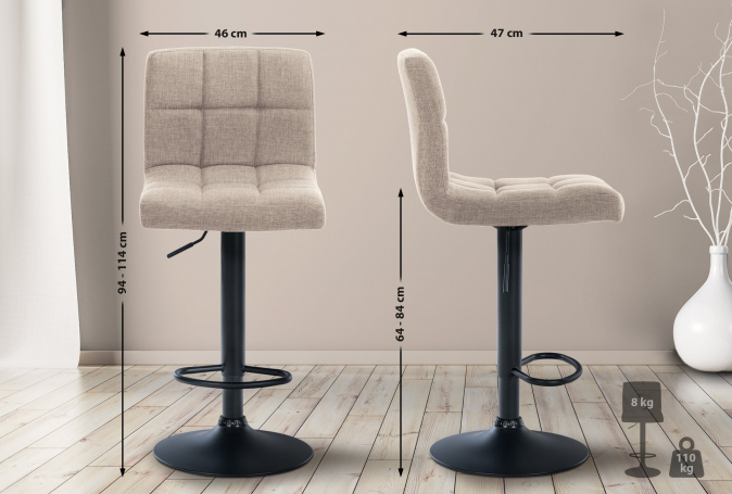 2 ks / set barová židle Dina látkový potah, černá, světle šedá | Světle šedá | 3 539 Kč