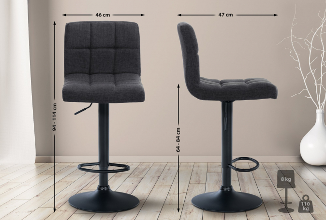 2 ks / set barová židle Dina látkový potah, černá, tmavě šedá | Tmavě šedá | 3 433 Kč