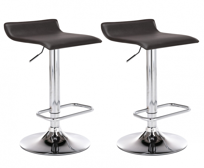 Sada 2 barových židlí Marlon vybízí ke společnému trávení večerů. Její dynamicky tvarovaný sedák s potahem z imitace kůže lze plynule nastavit do požadované výšky pomocí tlakové vzduchové pružiny. Dalším typickým znakem našich barových židlí jsou podnožky, které zajišťují vynikající pohodlí při sezení a lze je nastavit synchronně s výškou sedáku. Rám barových židlí je kompletně pochromovaný a snadno udržovatelný sedák s podnožkou lze otáčet o 360°.