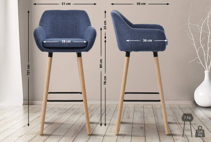 2 ks / set barová židle Grant látkový potah, tmavě modrá | Látkový potah | 7 Kg | 5 416 Kč