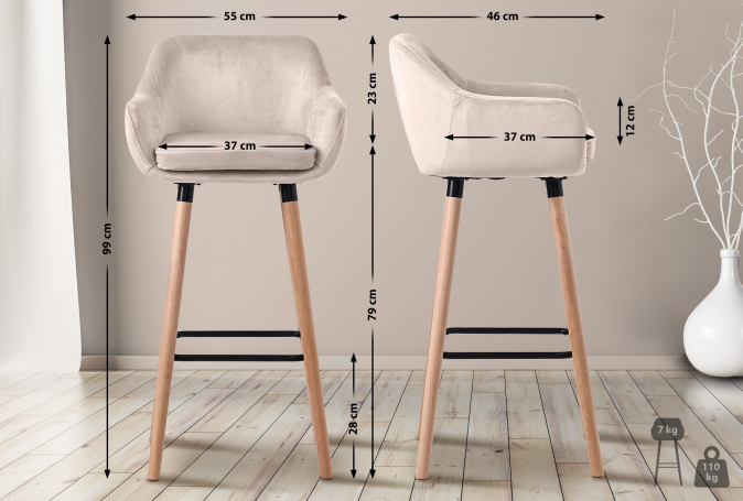Jelikož jsou sametové potahy stoliček k dispozici v různých barvách, lze tyto stoličky ideálně zakomponovat do vaší domácnosti.