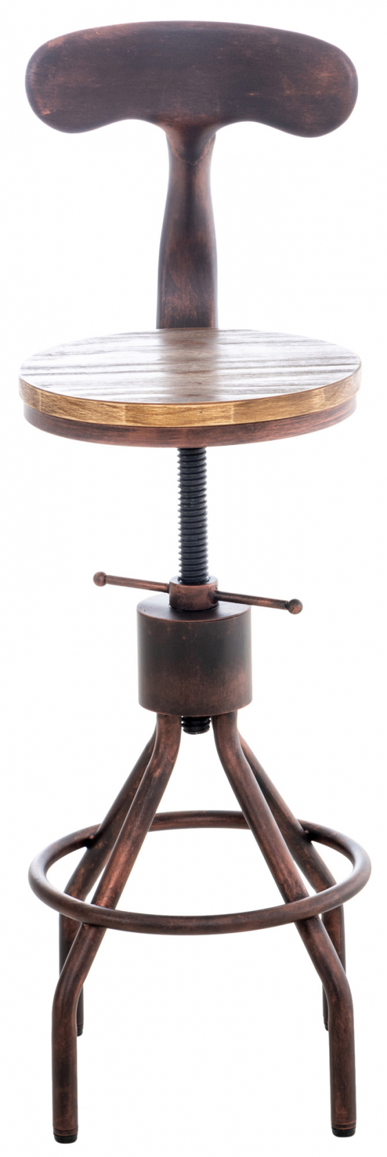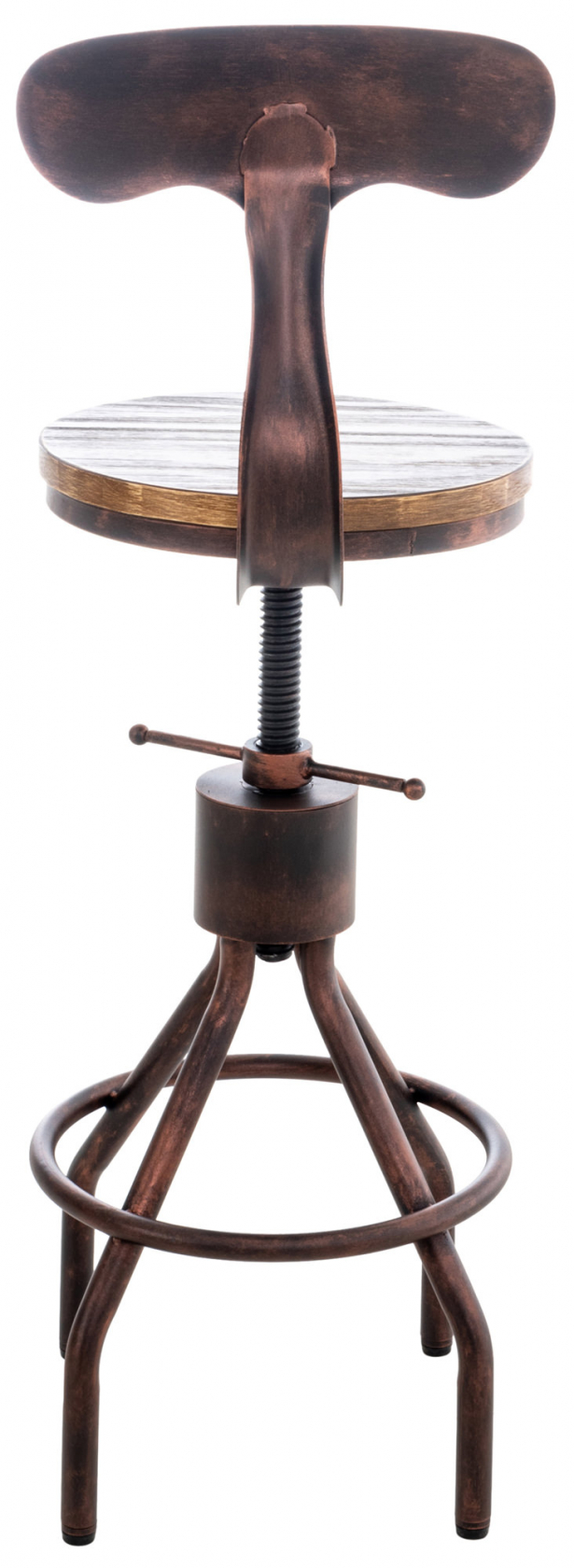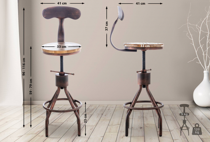 Tuto barovou židli lze díky jejímu stylovému designu používat různými způsoby. Neobvyklý vzhled s tradičními materiály dělá z této barové židle velmi zvláštní poutač pozornosti. Kulatý sedák z borovicového dřeva je útulným místem k posezení. I bez jakéhokoli čalounění nabízí tato barová židle ten nejlepší komfort sezení díky kovovému opěradlu a individuálnímu nastavení výšky. Robustní kovový rám zaručuje maximální stabilitu a pevnost. Celoplošná opěrka nohou poskytuje dodatečné pohodlí.