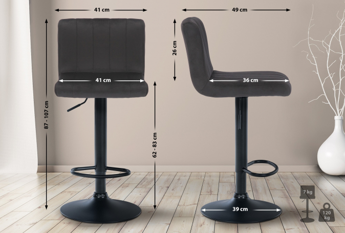 2 ks / set barová židle Jamie samet, černá | Černá | 3 433 Kč