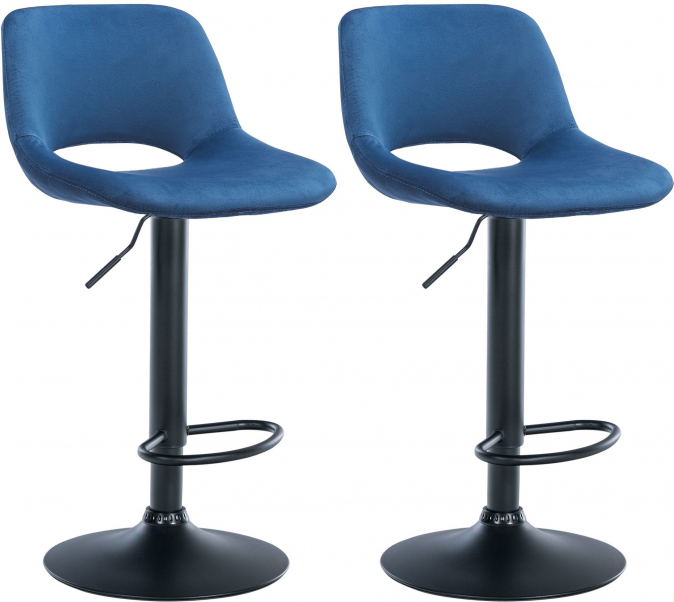 2 ks / set barová židle Kalmen samet černá, modrá | Modrá | 3 698 Kč