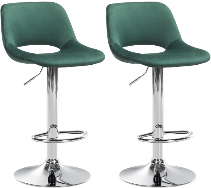 2 ks / set barová židle Kalmen samet chrom, zelená | Zelená | 5 665 Kč