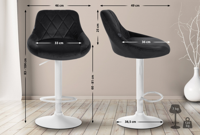 2 ks / set barová židle Lazio samet bílá, černá | Černá | 4 094 Kč