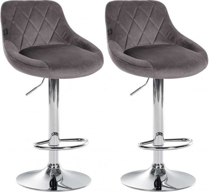 2 ks / set barová židle Lazio samet chrom, šedá | Šedá | 5 623 Kč