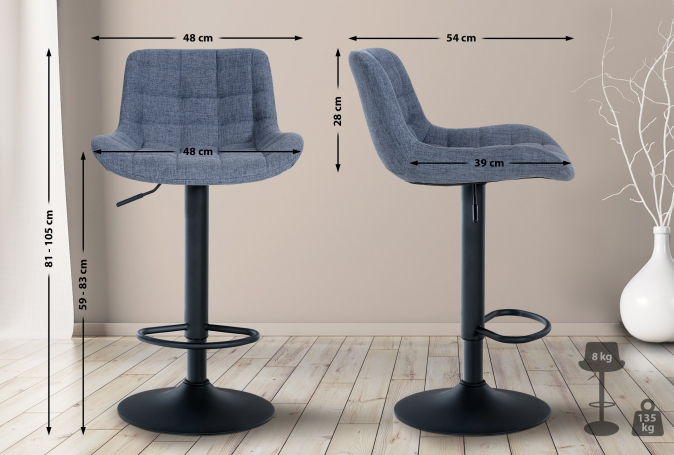 2 ks / set barová židle Lever látkový potah, modrá | Modrá | 3 962 Kč