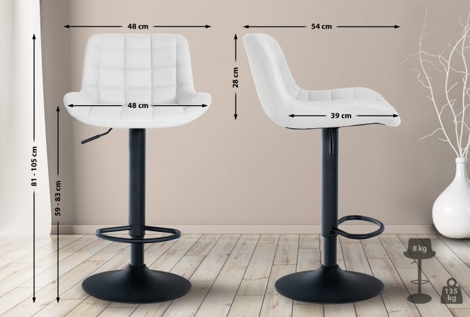 2 ks / set barová židle Lever syntetická kůže, bílá | Bílá | 3 433 Kč