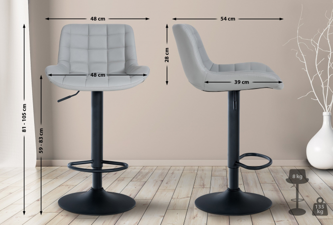 2 ks / set barová židle Lever syntetická kůže, šedá | Šedá | 3 433 Kč
