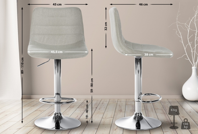 2 ks / set barová židle Louxur látkový potah, podnož chrom / krémová | Krémová | 2 905 Kč