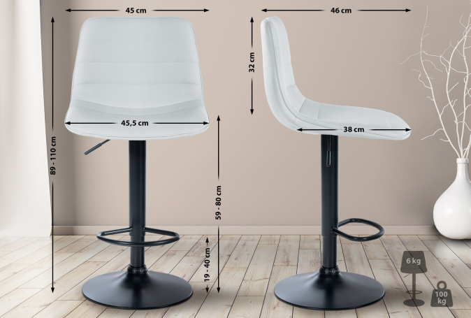 2 ks / set barová židle Louxur syntetická kůže, černá podnož, bílá | 89 - 110 cm | Syntetická kůže | 59 - 80 cm | 45 cm | 46 cm | Bílá | 6 Kg | 100 Kg | 45,5 x 38 cm | 32 cm | 19 cm | 2 905 Kč