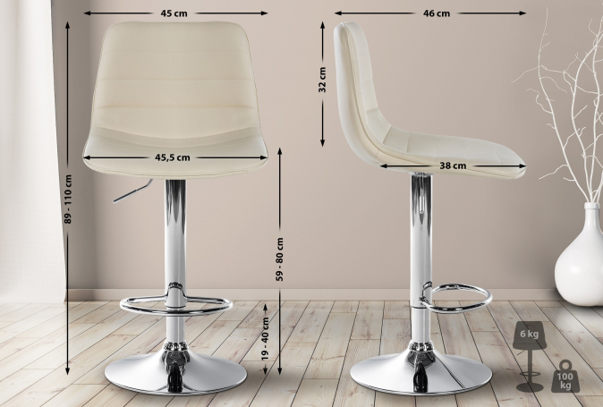 2 ks / set barová židle Louxur syntetická kůže, podnož chrom / krémová | Krémová | 2 905 Kč