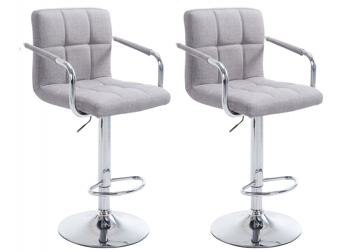 Tato moderní sada barových židlí s nadčasovým designem je skvělým doplňkem každé místnosti. Její pohodlné čalounění doplňují moderní opěradla, područky a ergonomické podnožky. Stylové ozdobné prošívání na čalounění potaženém látkou je krásným detailem. Sedáky otočné o 360° zajišťují všestranné pohodlí. Jsou také plynule výškově nastavitelná pomocí plynového zdvihu, takže jsou ideální pro jakoukoli výšku pultu.