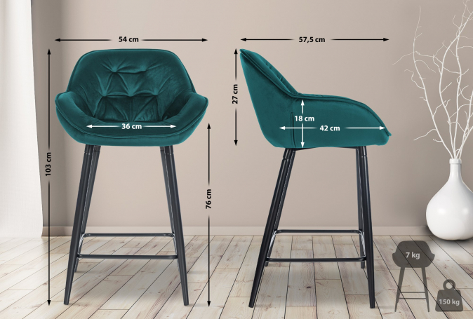 2 ks / set Barová židle Milton 76 samet, tmavě zelená