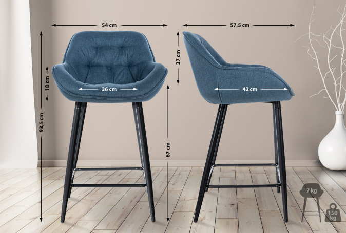 2 ks / set barová židle Milton látkový potah, modrá | Modrá | 4 623 Kč