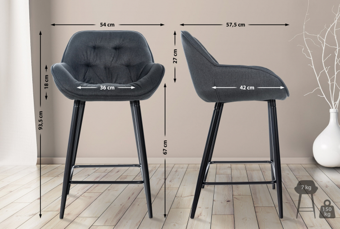2 ks / set barová židle Milton látkový potah, tmavě šedá | Tmavě šedá | 4 623 Kč